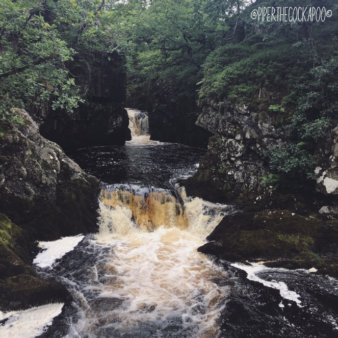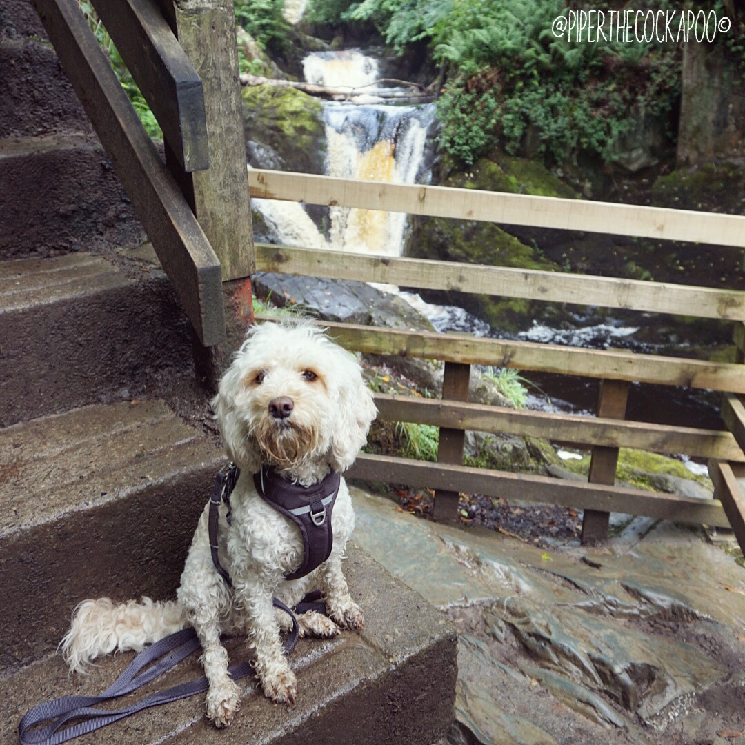 After about a 15 minutes we arrived at the first waterfall, I think there were 6 in total?! The natural landscape was beautiful to see! For about 80% of the route, you walk adjacent to the river, it’s so peaceful to listen to the running water! When we went it had been raining quite heavily for a few days so the river was very fast flowing, but had it been a little steadier there would have been a few great paddling spots for Piper!