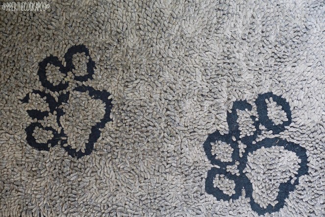 We lay this Dirt Control Pet Mat by the back door & it really helps to dry off the dogs paws when they run over it. It keeps hold of all the muck too, we just shake it out every couple of days. It saves so much time and is far easier than chasing the dogs around with a towel trying to dry their paws!
