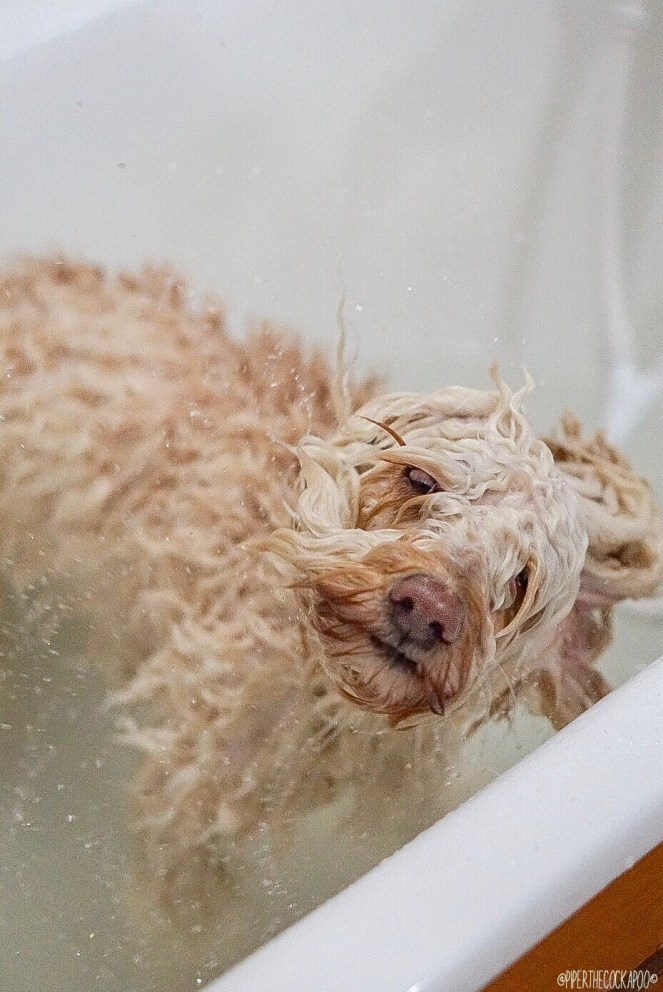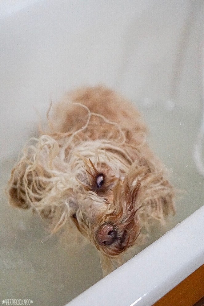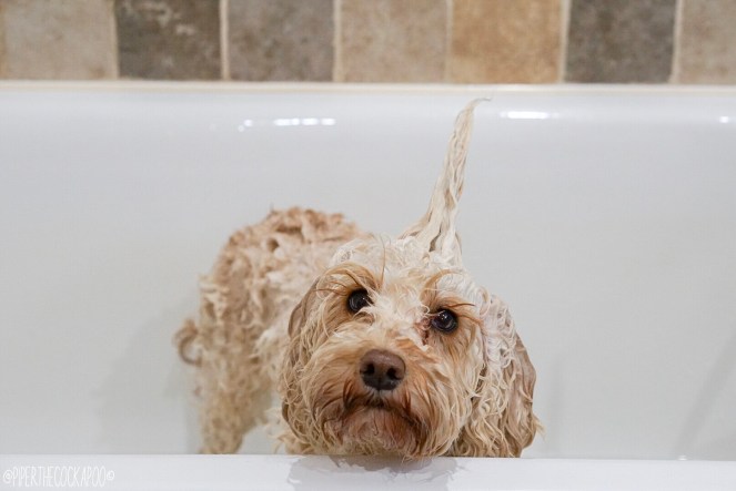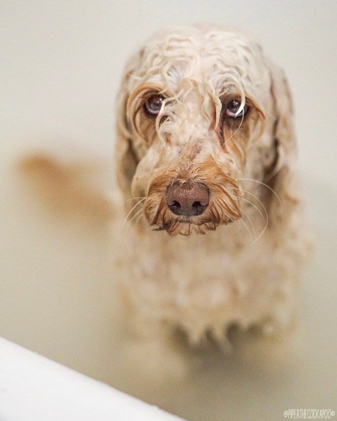 In Piper’s defence, she’s very good in the bath. She never tries to jump out. She just stands still & accepts its bath time!