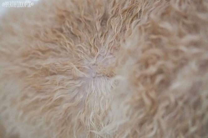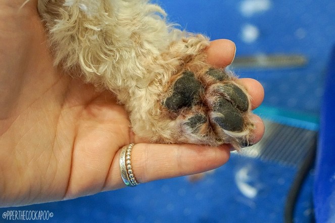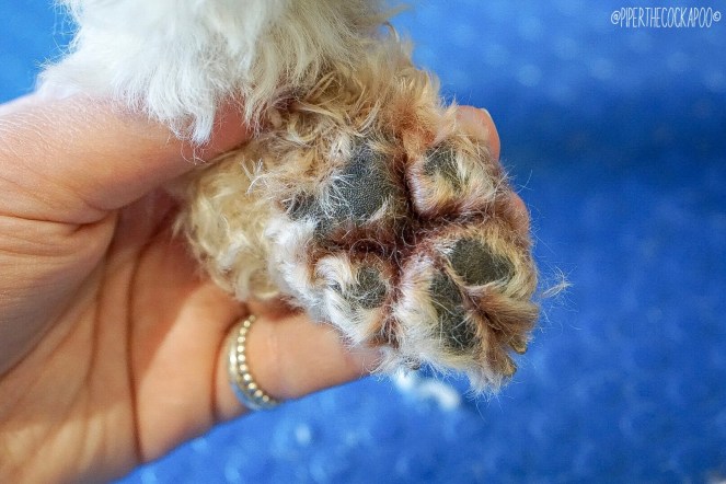 Piper has really sensitive feet, so to ease this I keep the fur on them cut really short, like a traditionally cut poodle. This helps them to dry off quicker if they get wet, which in theory is supposed to help.