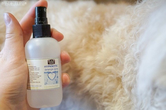 The first thing I do is generously spray her coat with hypKNOTic detangling spray, followed by a good brush through using the slicker brush. I then run through her coat using the comb, to make sure all the knots have been removed. If there are any developed matts, I either cut these out or use the dematting comb, depending on where they are on her body.