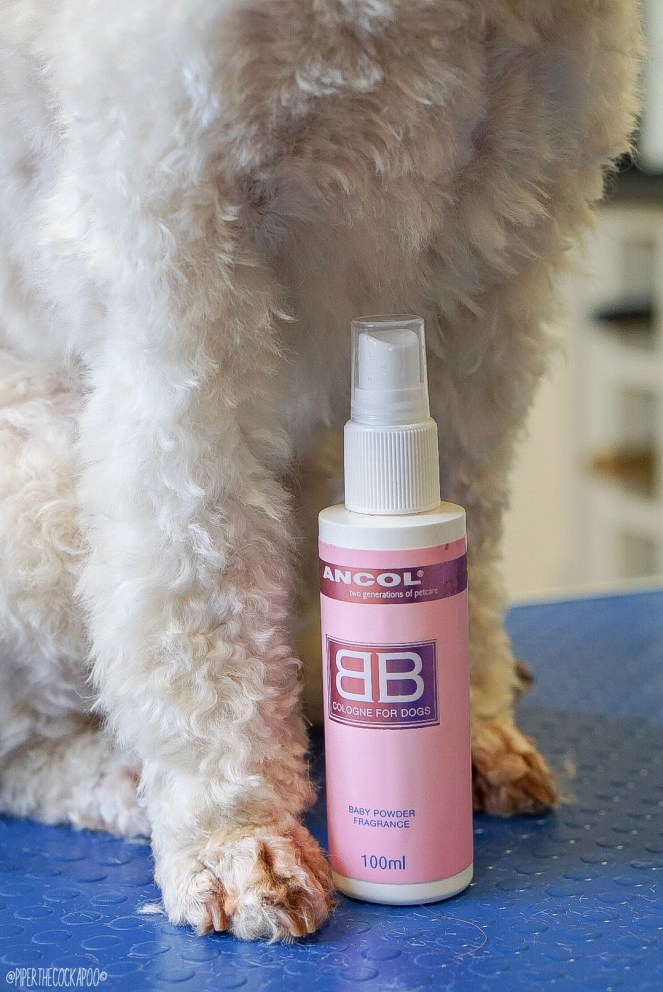 To finish, a baby powder spritz. I love this smell & really missed it when I started to self groom Piper, so this was a must have for me. Also great for a freshen up in between grooms.